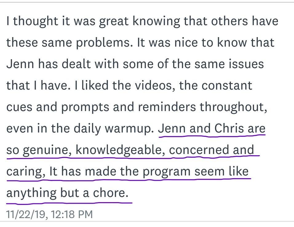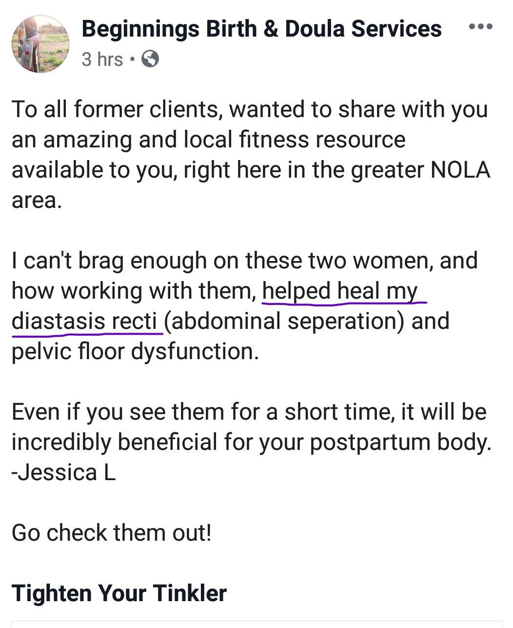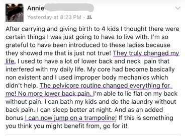 I’m noticing a big difference in my ab separation and my ability to control my bladder, and it hasn’t even been 30 days yet! You ladies definitely deliver the results you promise – thank you so much!